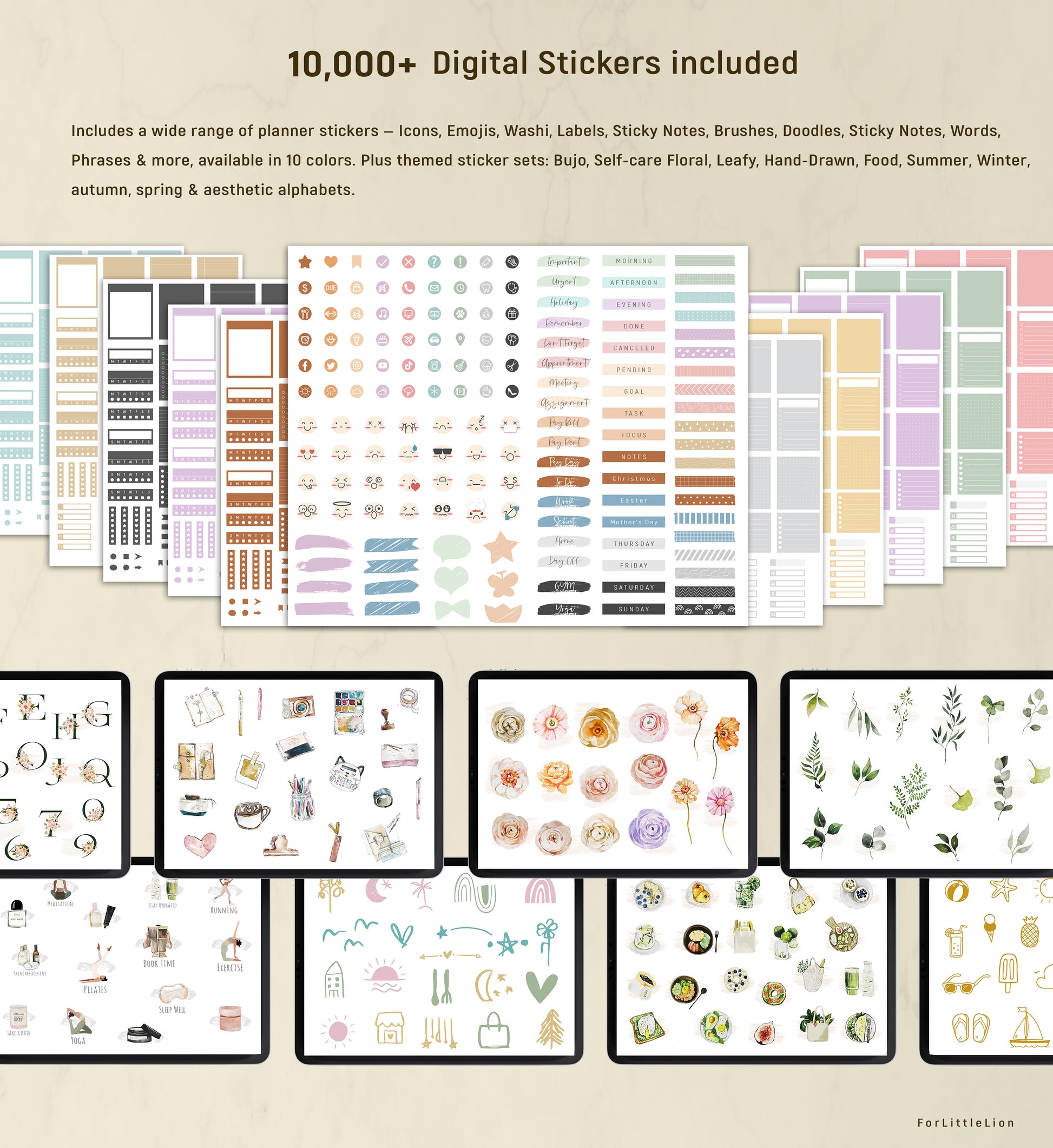 ✔︎ 450+ stickers preinstalled in GoodNotes file for easy access