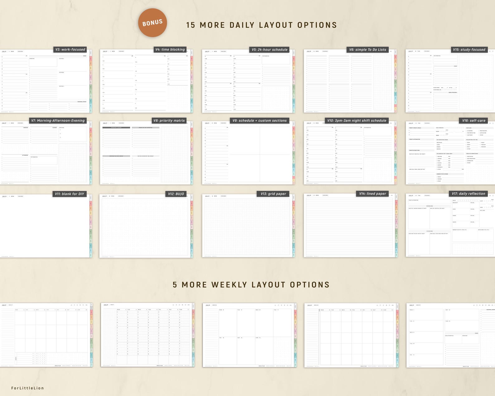 • 5 weekly layouts