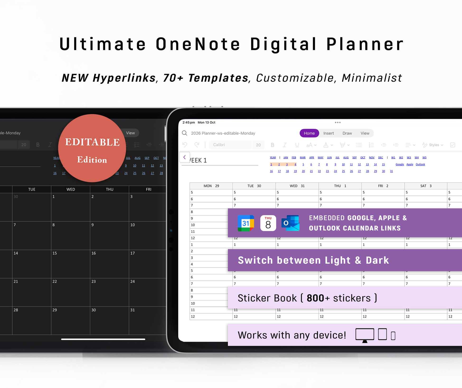 Ultimate OneNote Planner | Light & Dark Mode | Editable Edition | 2026 + Free 2025