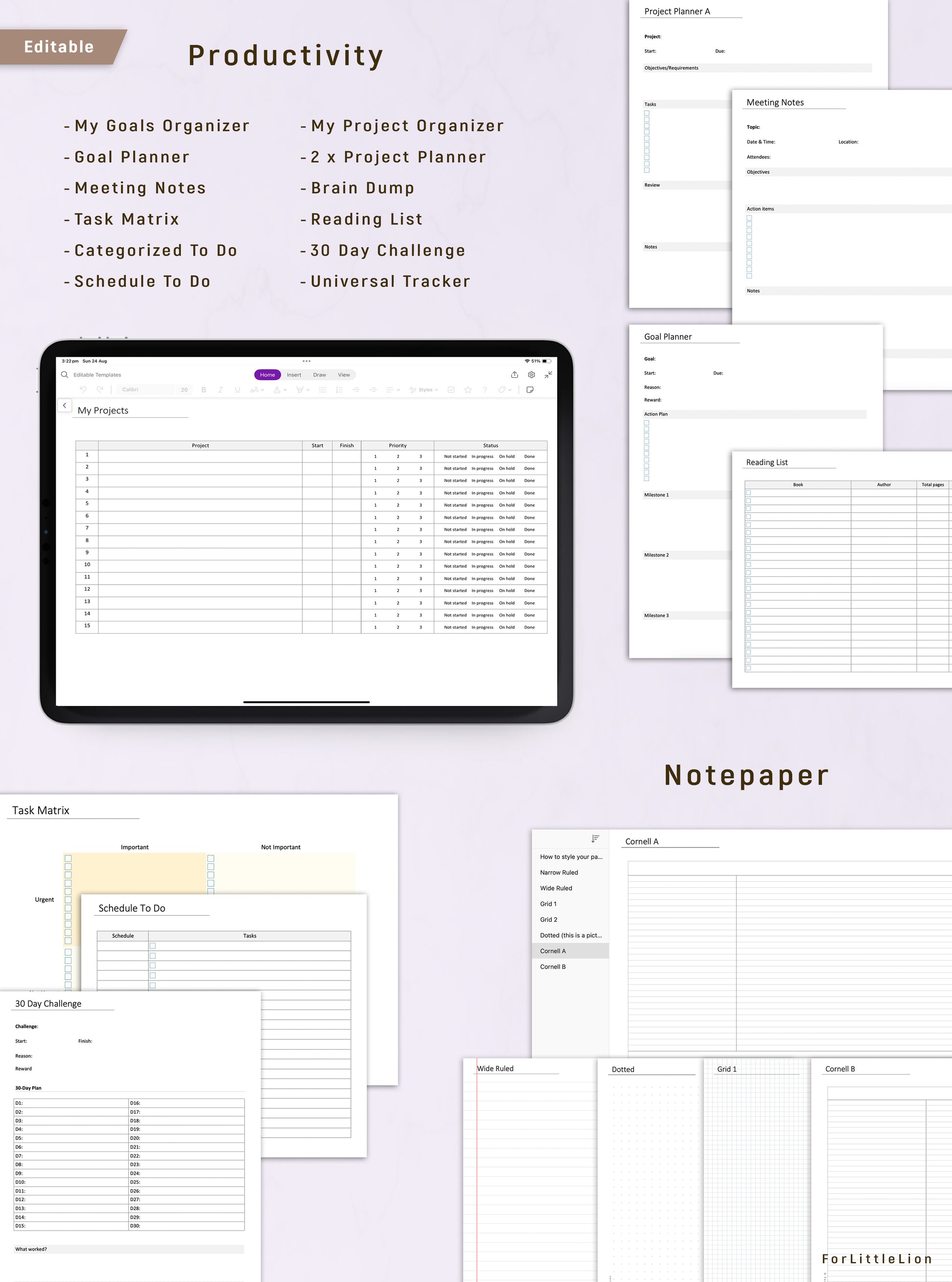 ✔︎ Standard Microsoft OneNote Notebook - You can add/delete new sections/pages or incorporate it into other OneNote Notebooks.