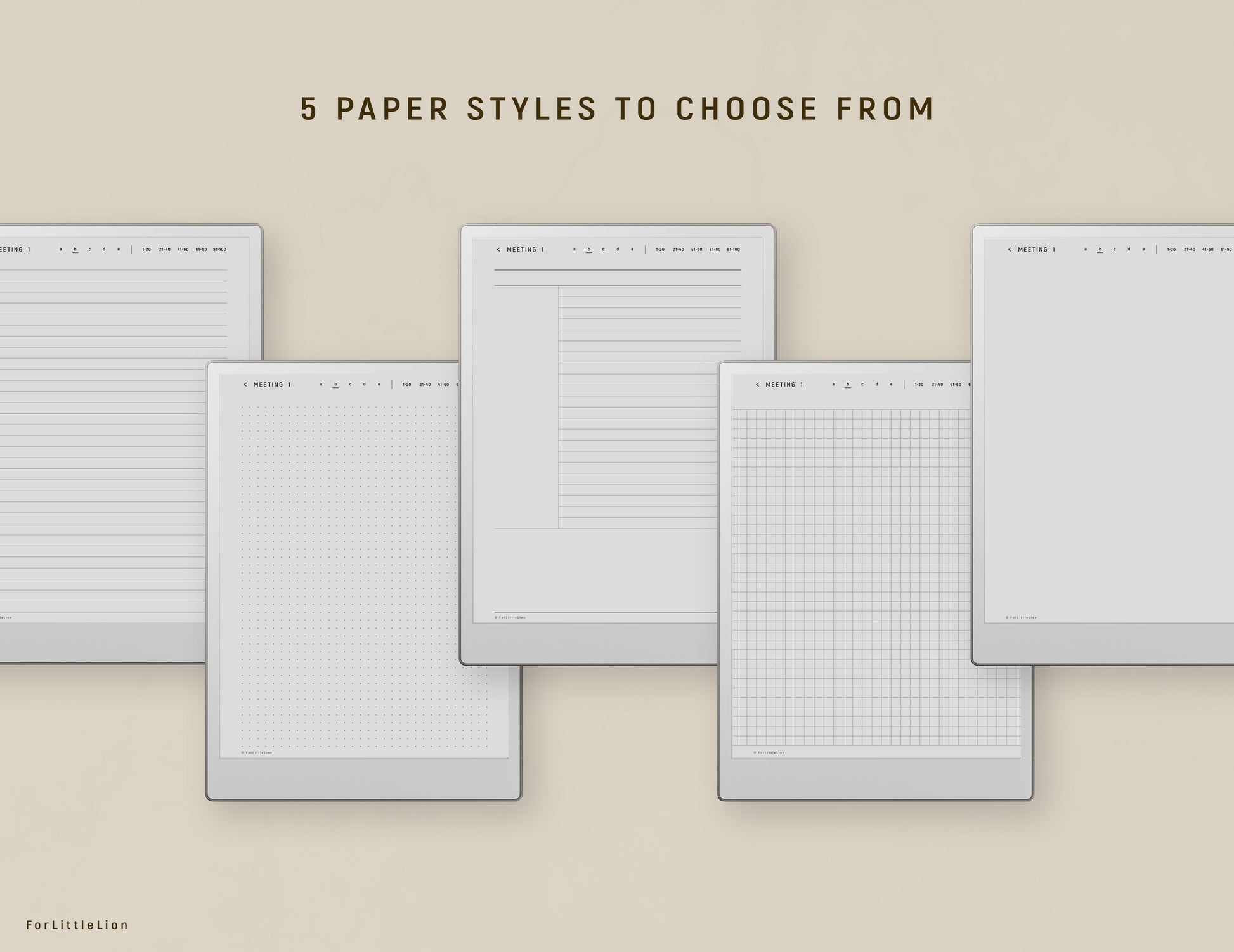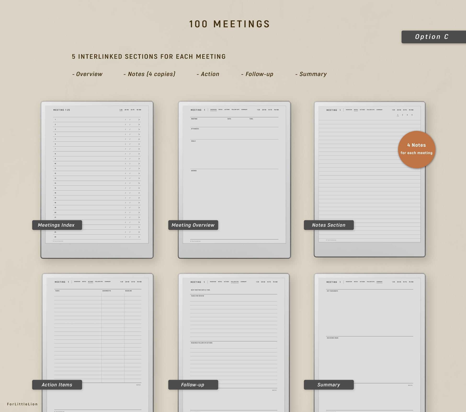 ✔︎ Each meeting has 5 interlinked Notes pages / Sections